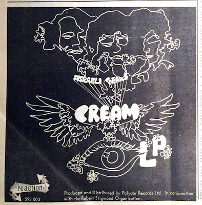 In Britain, Cream’s early releases appeared on Robert Stigwood’s Reaction Records with its distinctive blue and silver pop art label design. In operation for less than two years, the label released just three LPs, 18 singles and one EP during 1966 and 1967. The two big hitters on Reaction (and the only artists to enjoy chart action) were The Who and Cream. All releases on the label were distributed by Reaction’s parent company Polydor.